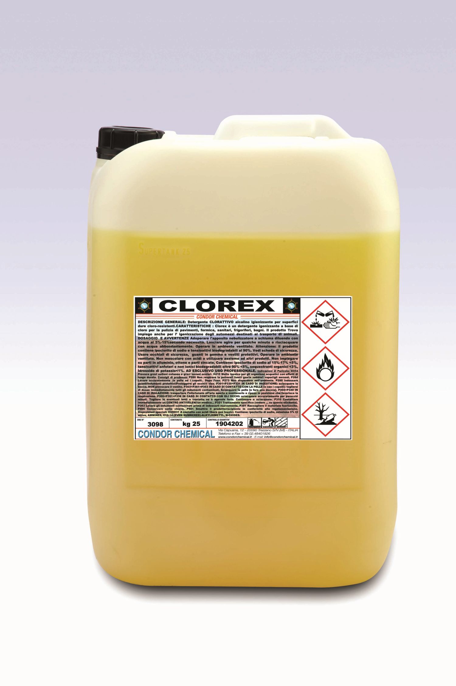 Detergente cloroattivo alcalino.